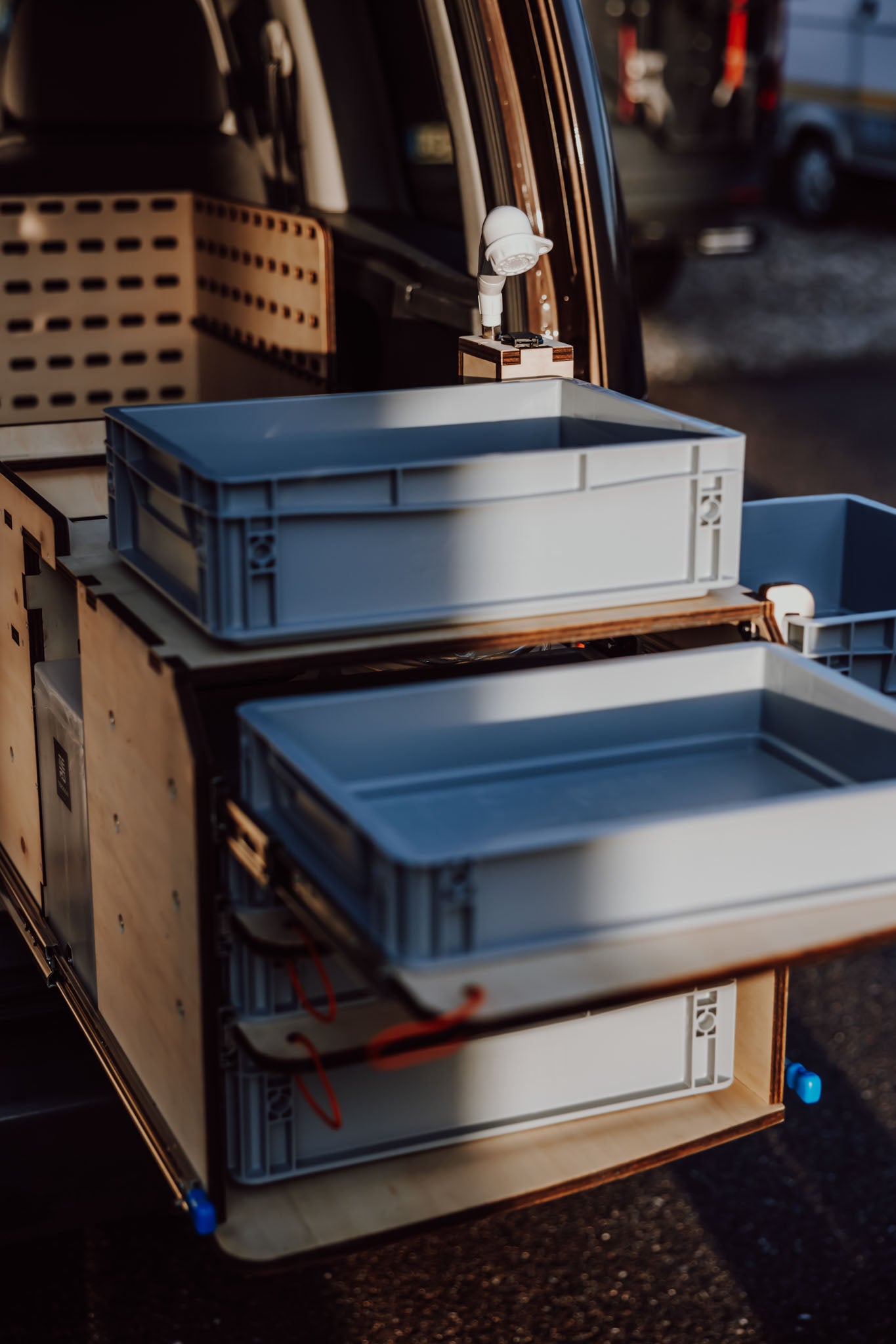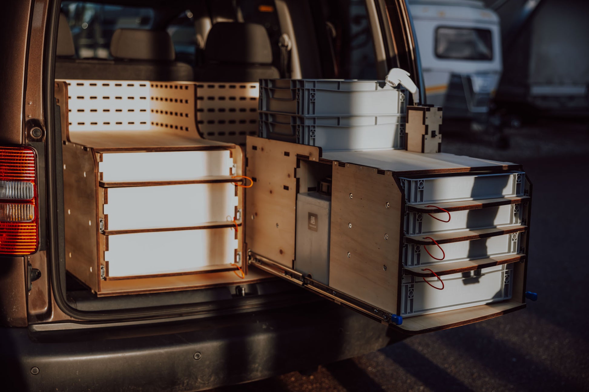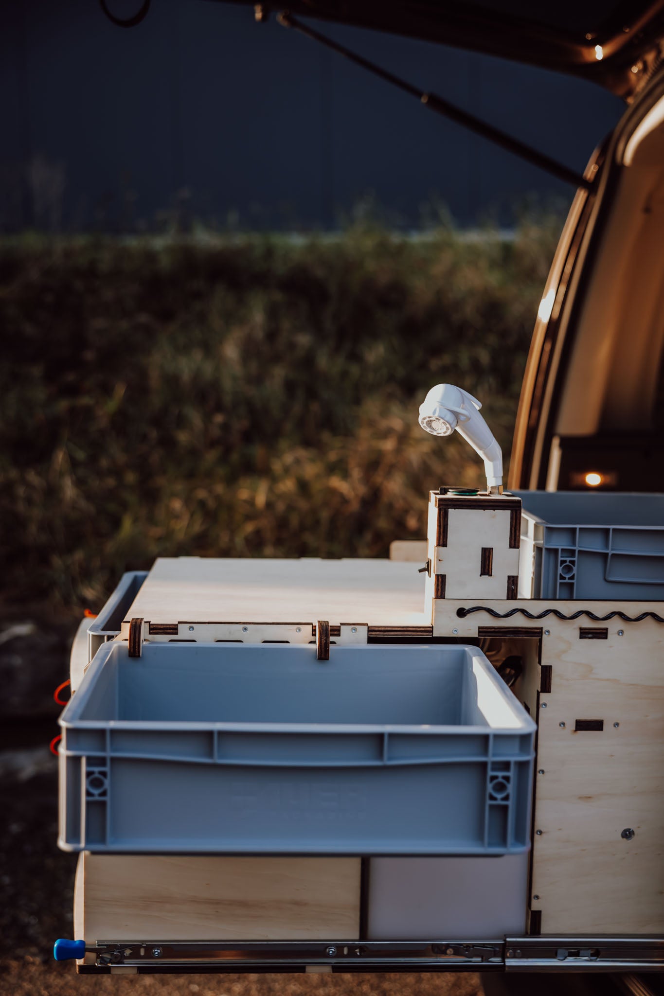Heckauszug für deinen Kofferraum: Terobox Modell für alle Camper mit Dachzelt, Zelt oder Aufstelldach. Du möchtest dein Alltagsauto schnell und einfach zu einem Camper umbauen - wichtig ist dir dabei eine perfekte Struktur und die Möglichkeit fließendes Wasser zu integrieren? Dann ist unsere Campingbox C(arry) genau das Richtige für dich!