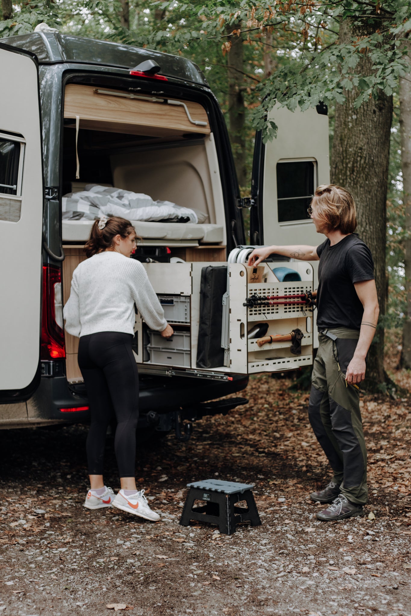 Wir sind mit der Lösung super zufrieden. Unsere Heckgarage ist jetzt geordnet und hat mehr Platz zum Verstauen.